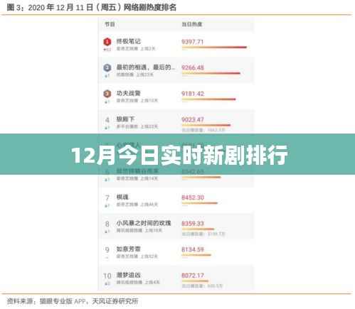 随着年末的到来,12月的电视剧市场愈发活跃,众多新剧争相上映,吸引了大量观众的眼球,本文将为大家带来12月今日的实时新剧排行,让我们一起了解哪些剧集在观众中获得了极高的关注度和好评。
